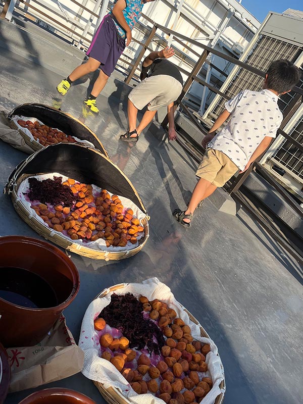 食事、勉強はもちろん、梅干しの天日干しなどの体験も一緒に行っています。