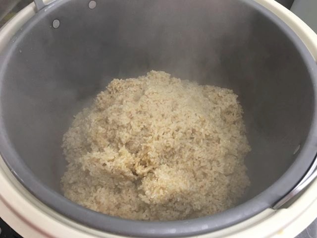 ※この時に火を弱めすぎると玄米がしっかり膨らまず美味しくないので、火加減注意。